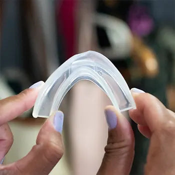 4. Ajusta la boquilla a una posición cómoda y muerde, moldeándola con los dedos alrededor de tus dientes y encías.