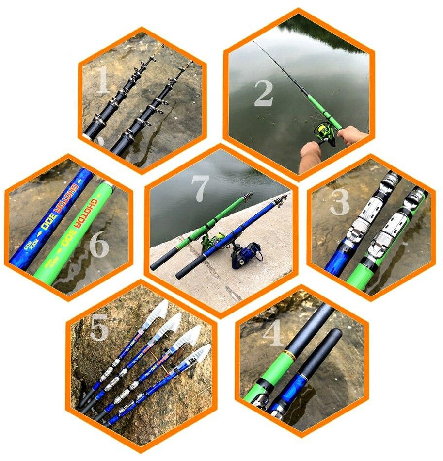 GoldMarine - Vara Telescópica de Fibra de Carbono c/ Fibra de Vidro (Compatível com MOLINETE e CARRETILHA)